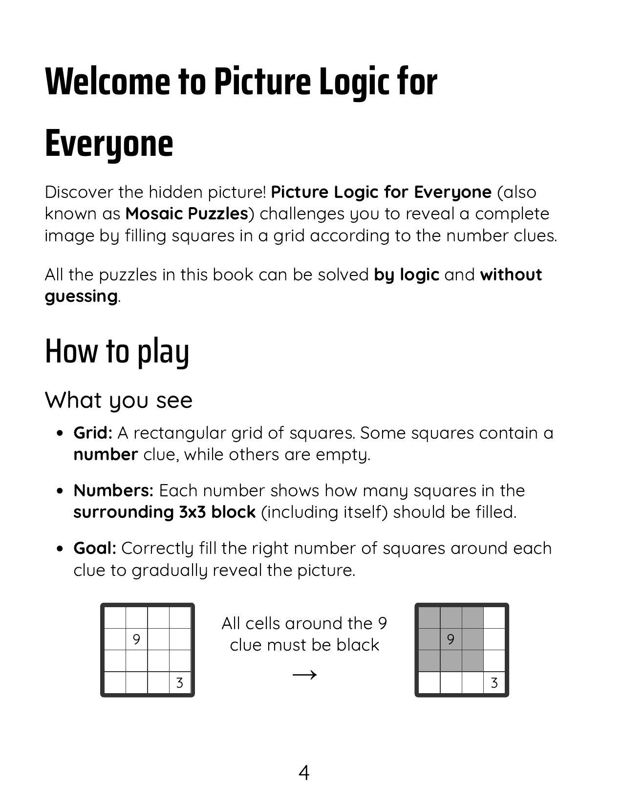 100 Mosaic Picture Logic Puzzles